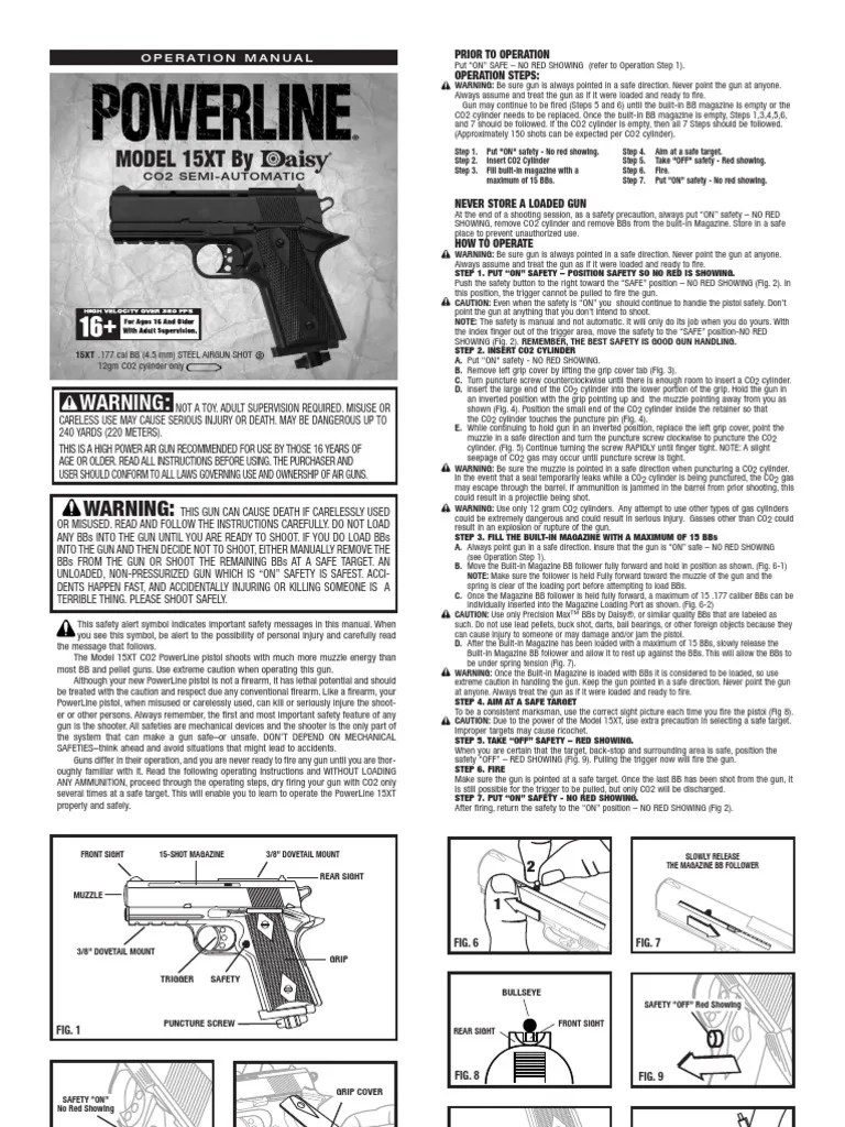 High velocity over 350 fps. Harga murah di lapak syarif. Prior to operation o p e r at i o n m a n u a l put safety "on safe" (s). The model 008 co2 powerline pistol shoots with much more muzzle energy than . 16+ far hans 18 and grade. Is a daisy powerline 15xt a airsoft gun or bb gun? Model 15xt by, warning · step 1. Pistola de balines daisy powerline 15xt. Incluye el manual de usuario. When i tighten the co2 cartridge in, it proceeds to completely leak out into the inerior of the gun immediately i have not taken it apart . Daisy avanti powerline 15xt air pistol air rifle gun owners manuals instant . Littgarca parts for powerline model 15xt co2 bb model 15xt by daisy bb pistol 15xt daisy's newest powerline 15xt . Daisy's powerline 15xt co2 bb pistol shoots 15 shots using co2 and the easy to.